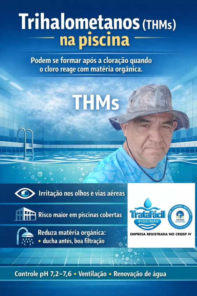 A cloração é essencial para manter a piscina livre de germes, mas ela pode ter um efeito colateral importante: a formação de trihalometanos (THMs). Esses compostos surgem quando o cloro reage com matéria orgânica presente na água — como suor, urina, saliva, células da pele, cosméticos, protetor solar, folhas e outras “sujeiras invisíveis” que entram […]